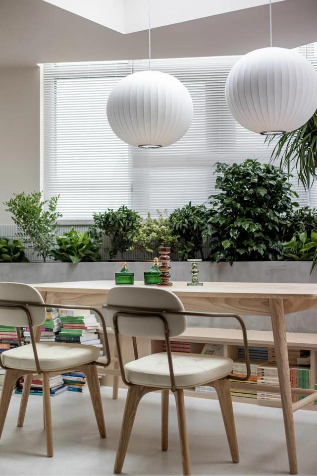书案的最左端留出了一个方形的洞口,不妨让下方的绿植,天然地成长出来,为室内填补了一份绿意盎然的新颖感。